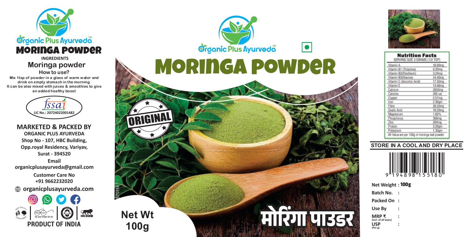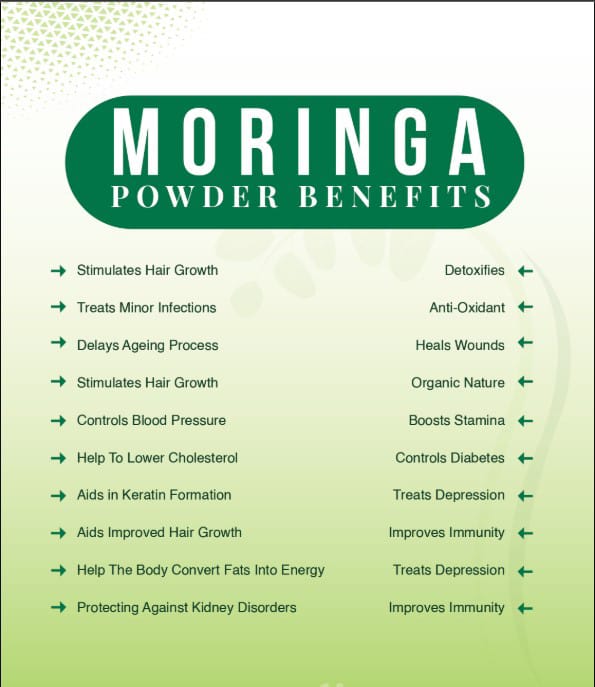 One of the standout benefits of Moringa Powder is its high protein content. It contains all nine essential amino acids, making it a complete protein source for vegetarians and vegans. This makes it a great addition to smoothies, soups, and other dishes for those looking to increase their protein intake.
